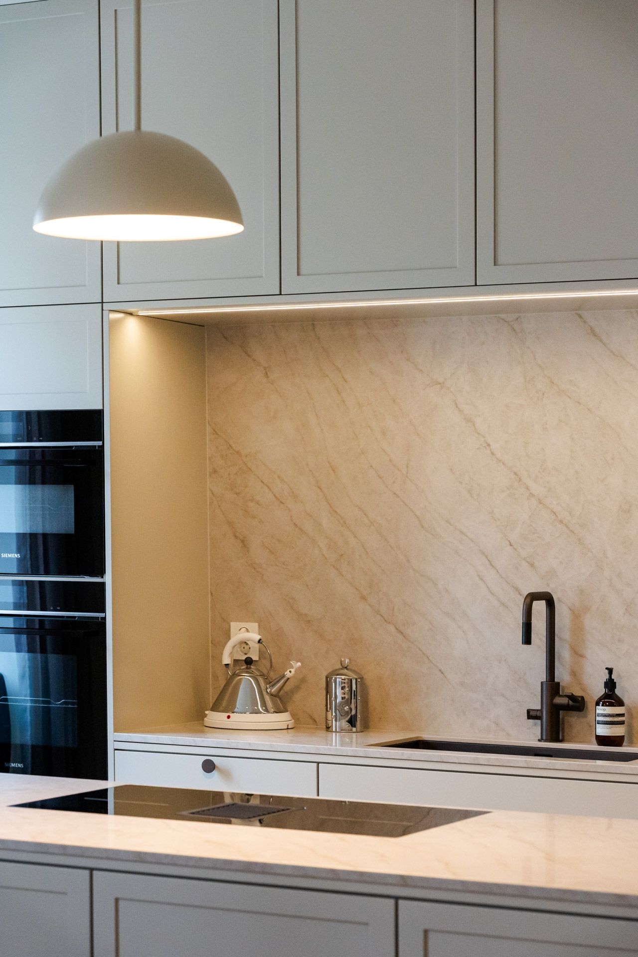 Opplev den perfekte kombinasjonen av funksjonalitet og skjønnhet med vårt nye kjøkken fra HTH. Vi har ikke bare installert dette moderne kjøkkenet, men også gjennomført etterisolering av veggene, lagt varme på gulvet og skapt en fantastisk belysning, samt nedsenket taket for å skape den ultimate atmosfæren. Opplev et kjøkken som ikke bare imponerer visuelt, men også oppfyller alle dine praktiske behov.