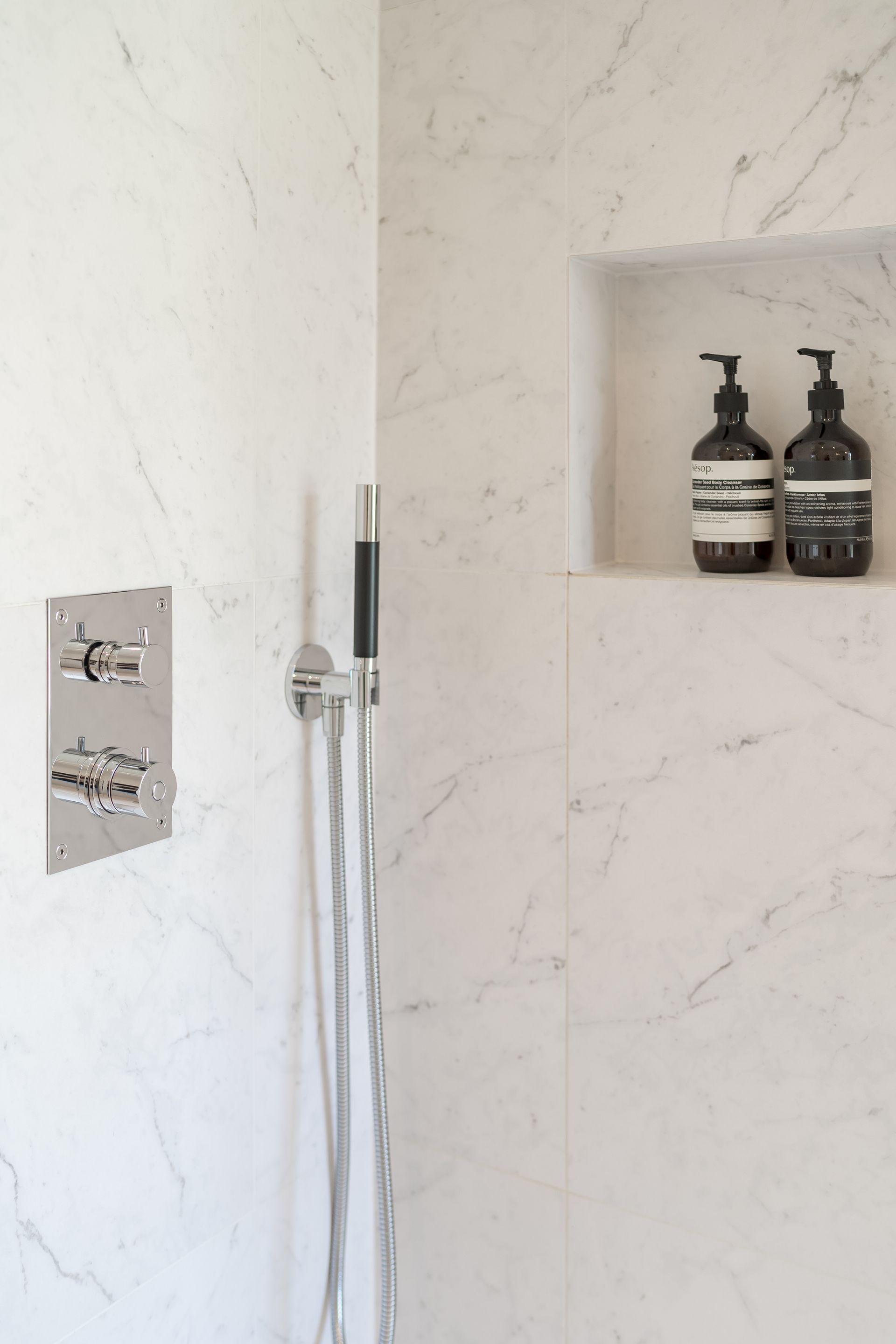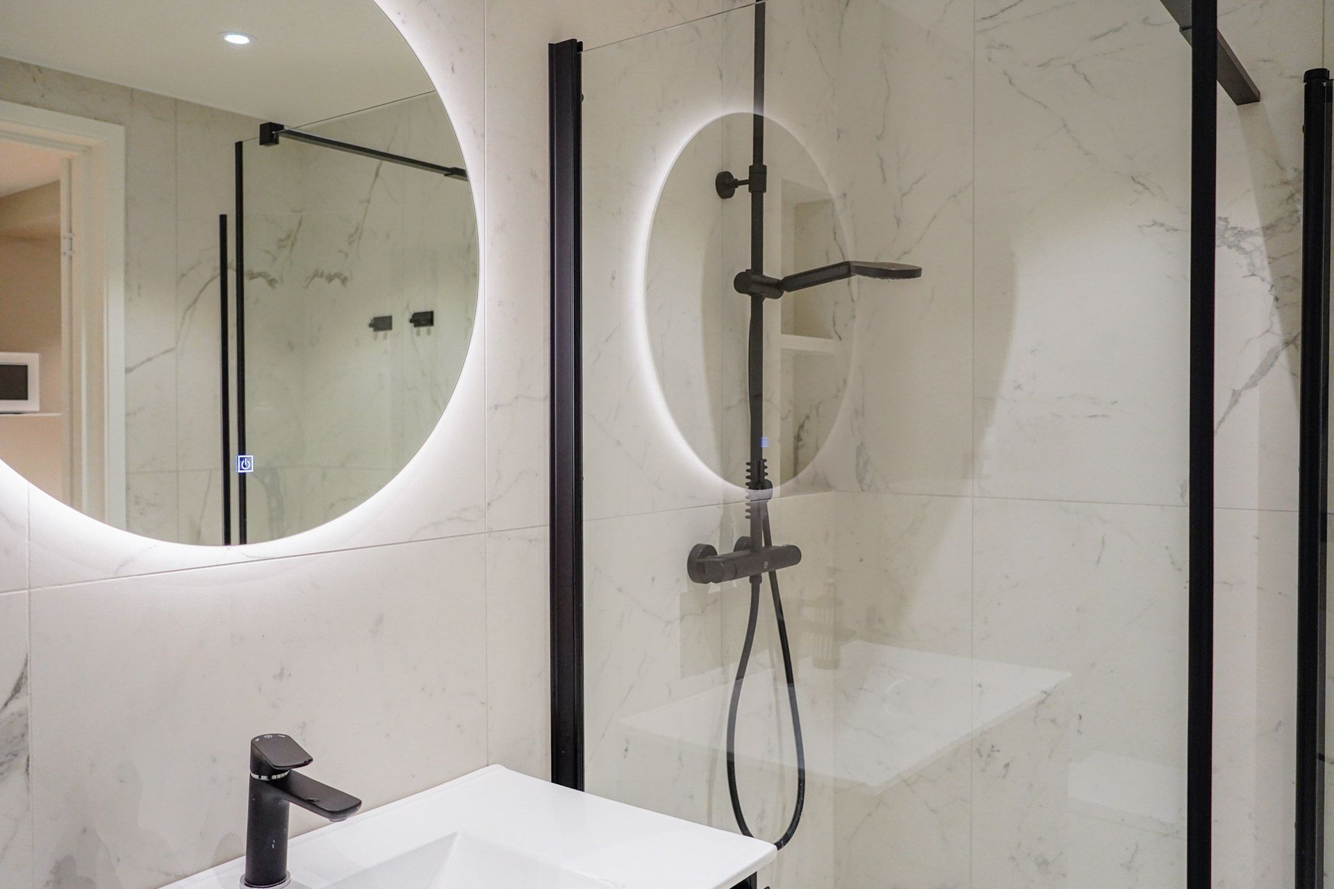 Fra omfattende rørleggerarbeid og elektriske oppgraderinger til nydelige fliser og skreddersydde baderomsmøbler – vi har transformert dette rommet til et stilig og funksjonelt paradis. La deg imponere av de vakre fiskebensflisene som pryder dusjsonen og det fantastiske endelige resultatet av vår arbeid.