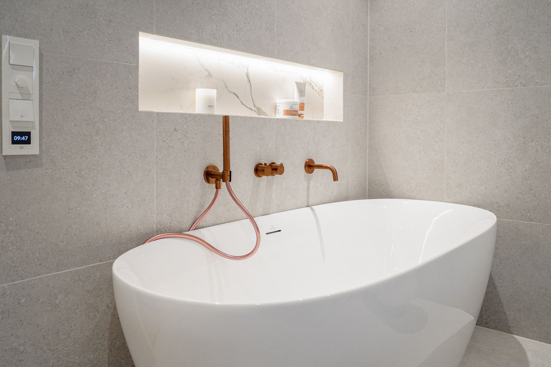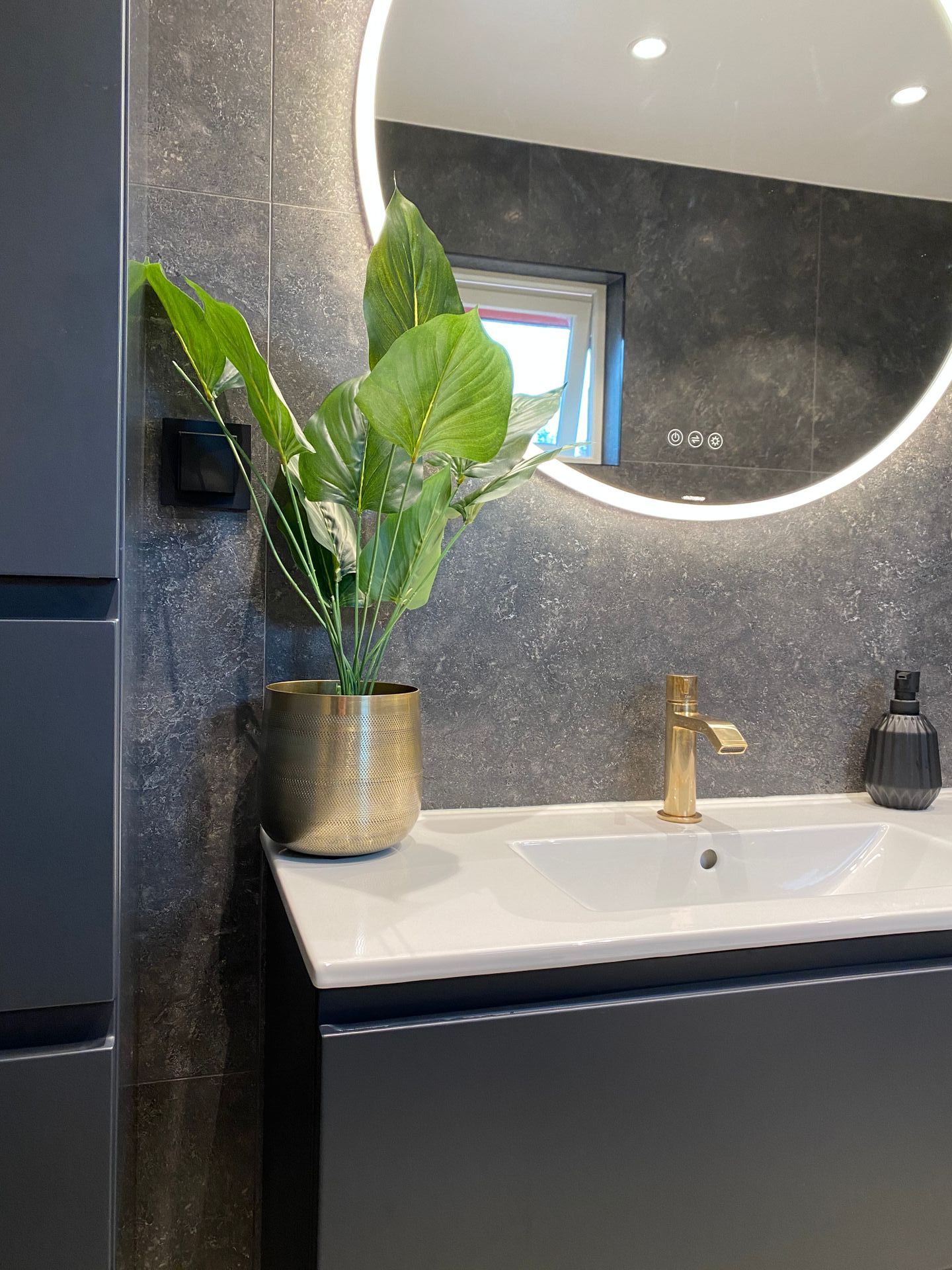 Vi har skapt et mesterverk av design og funksjonalitet, der hvert eneste element er nøye utvalgt og omhyggelig utført. Fra de delikate flisene til de luksuriøse armaturene, inviterer dette badet til en opplevelse av ren eleganse og avslapning. La deg inspirere av denne unike transformasjonen og oppdag drømmebadet du alltid har ønsket deg.